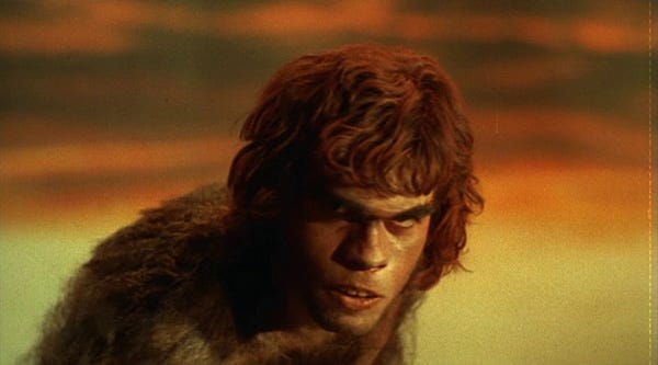 And then there’s the ending. In the book Cornelius and Brunner merge together into a beautiful hermaphrodite messiah that leads a throng of acolytes into the new world. In the film Jon Finch emerges from the orgasmatron, or whatever it’s called, turned into a neanderthal Humphrey Bogart impersonator who lopes off into a cheap sunset effect in possibly the worst ape-man costume ever seen on screen. Thus what little credibility the movie had managed to accumulate in fits and starts over the previous 90 minutes is thrown away in an utterly pointless and unfunny ‘ironic’ sight-gag. Unsurprisingly Moorcock’s experience with this film, and with The Land That Time Forgot, put him off writing anything for a year.